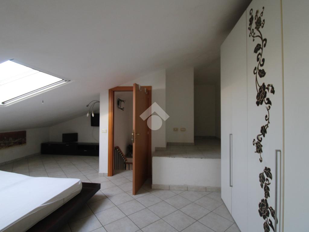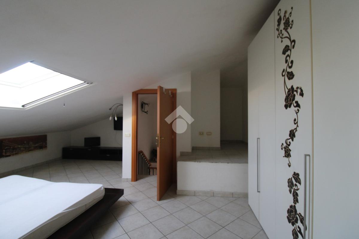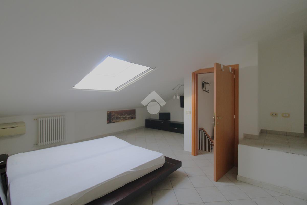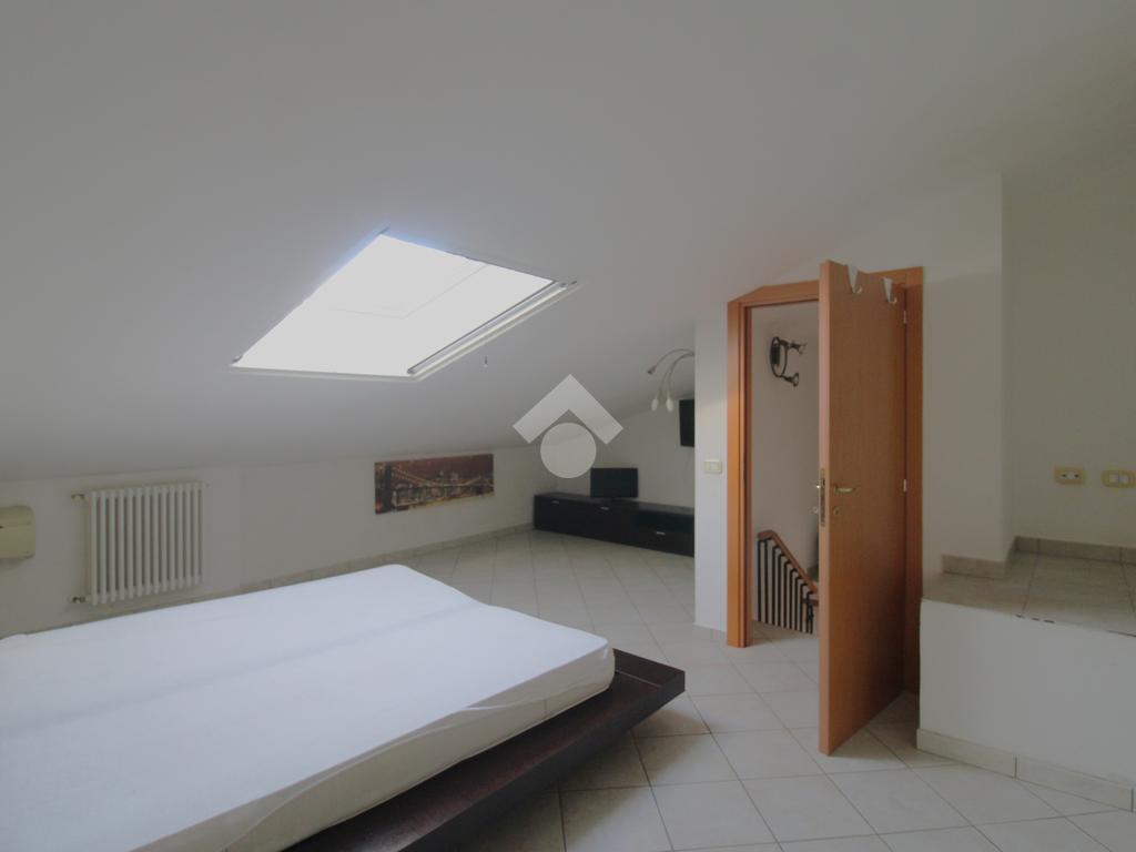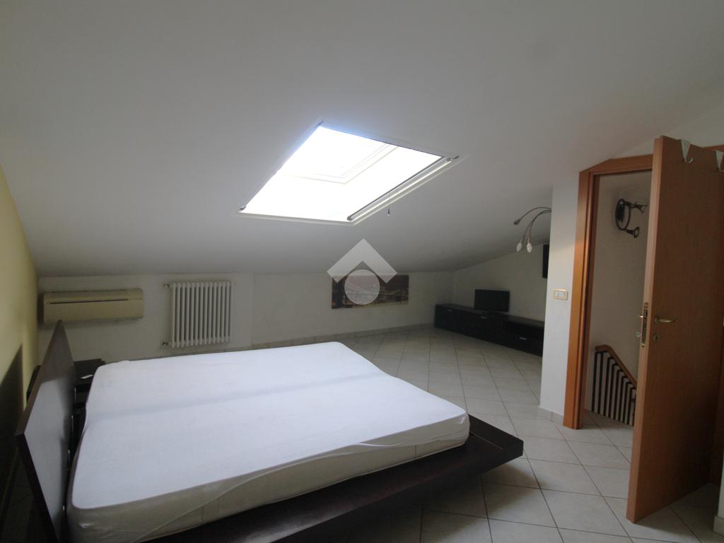 Il piano superiore mansardato ospita un ulteriore spazio utilizzabile come seconda camera da letto e un secondo bagno con box doccia; entrambi sono dotati di finestre Velux che garantiscono luce naturale e ventilazione.