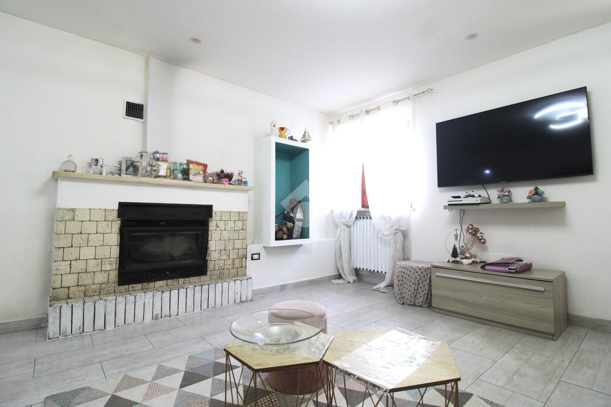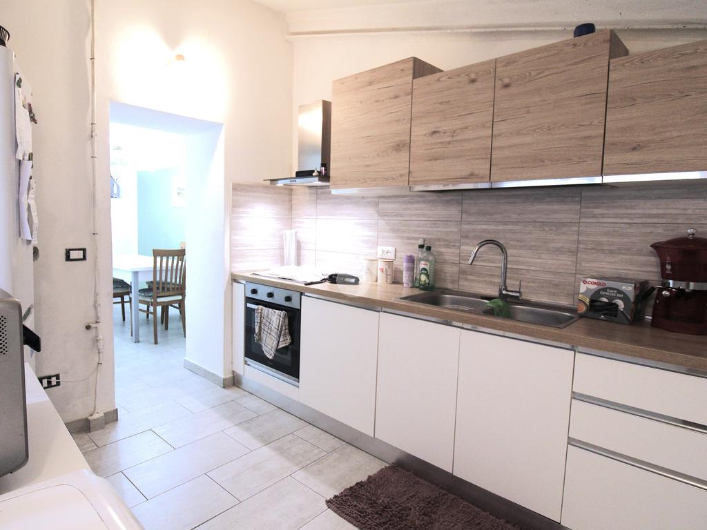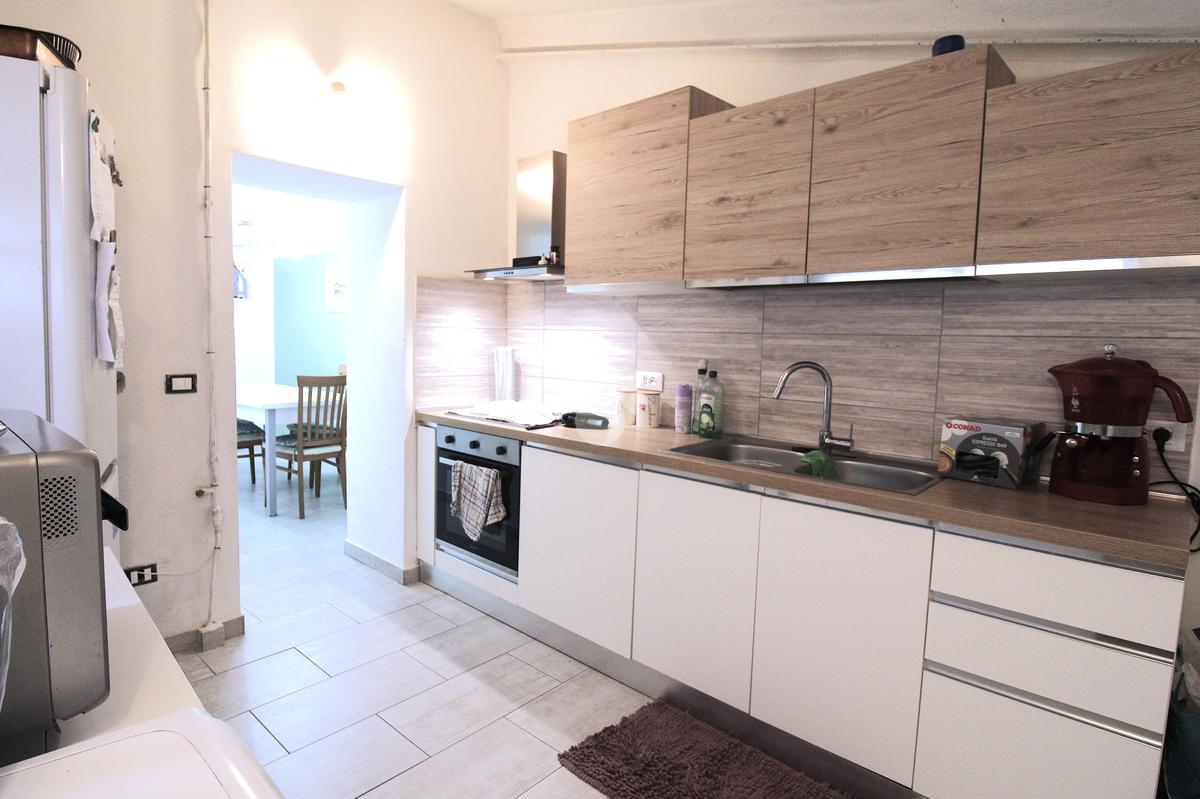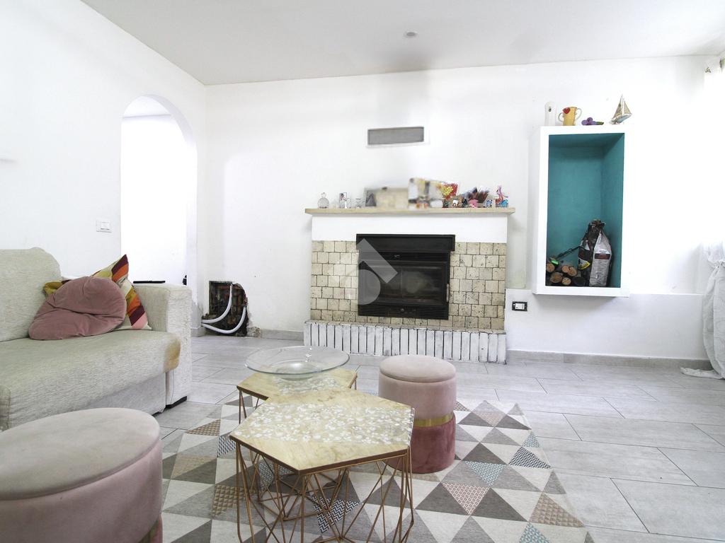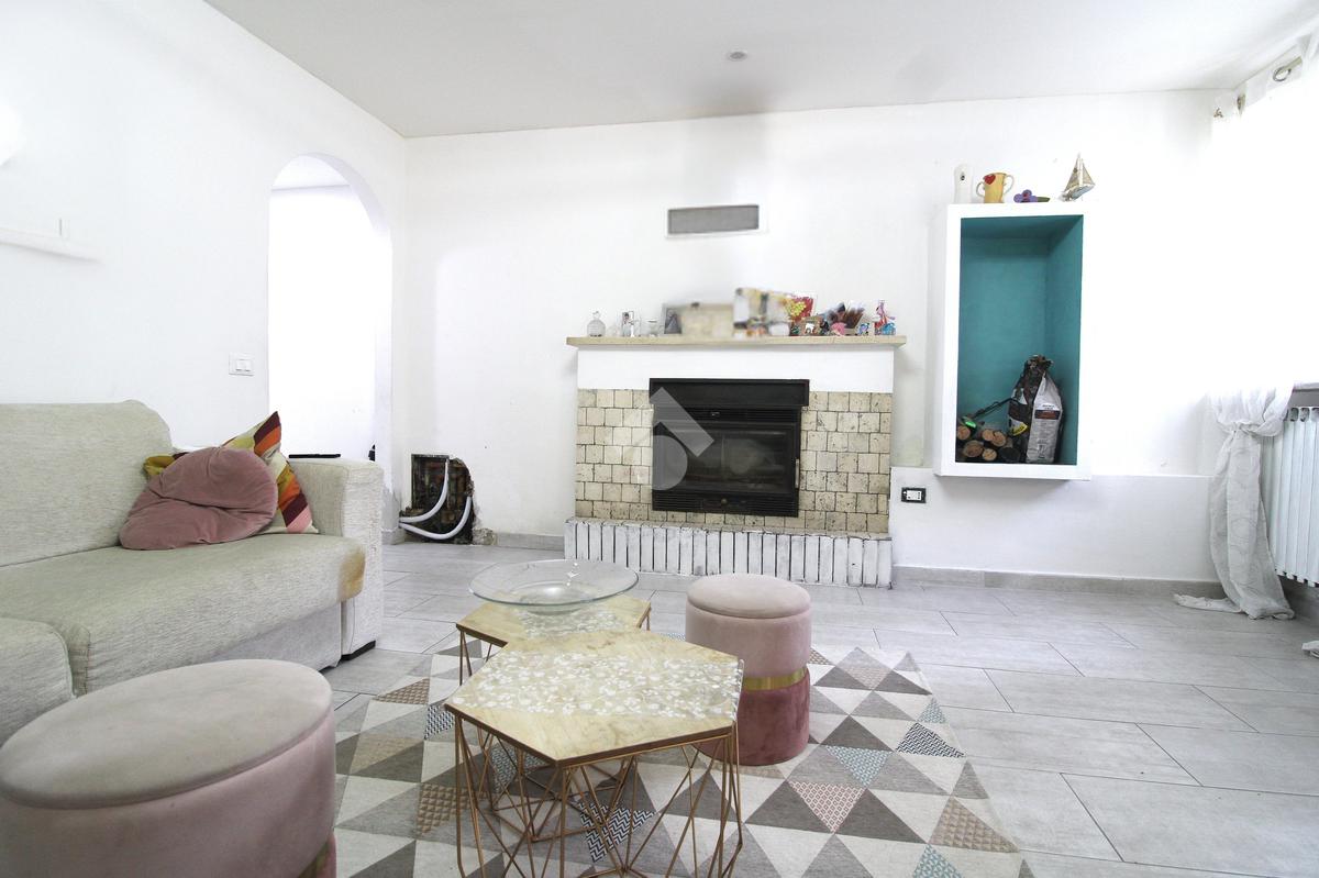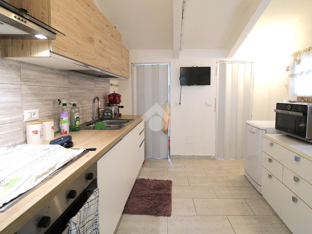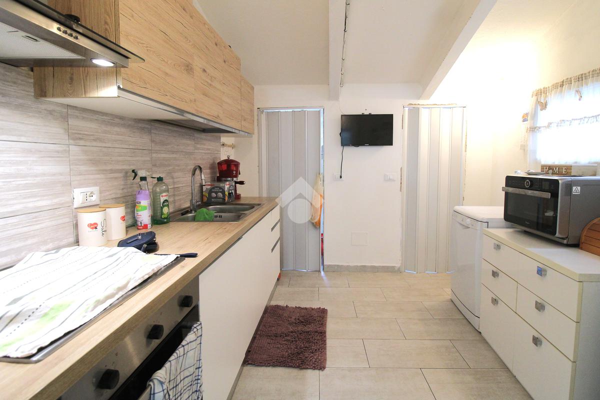 Al piano terra, l'immobile offre un'accogliente cucina separata dal soggiorno: dal disimpegno d'ingresso si accede anche al soggiorno con camino a legna, che crea un'atmosfera calda e rilassante.