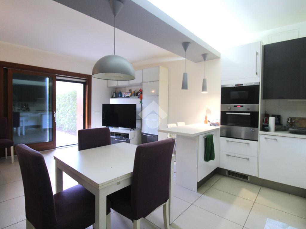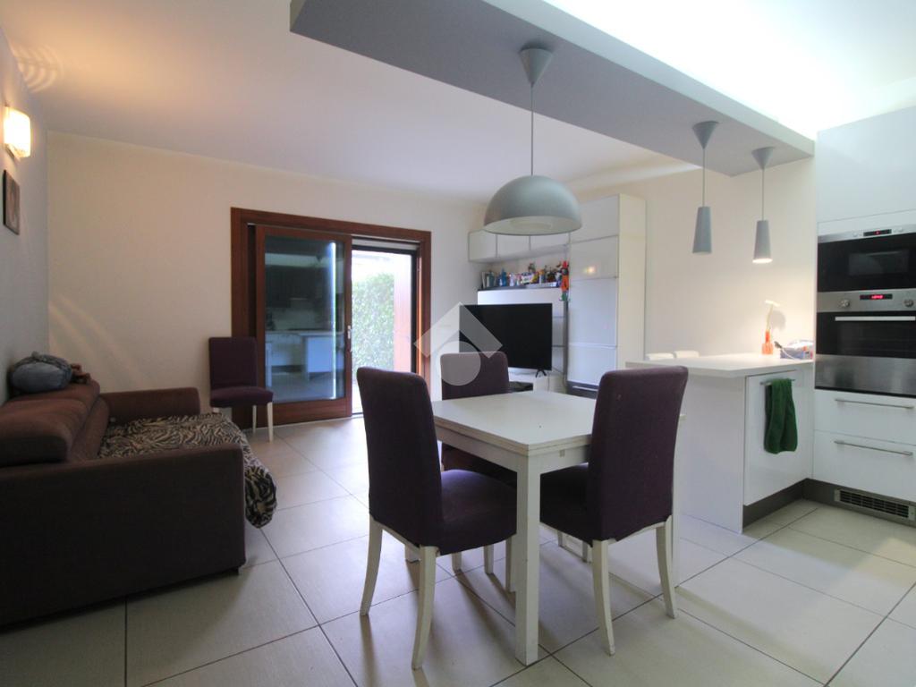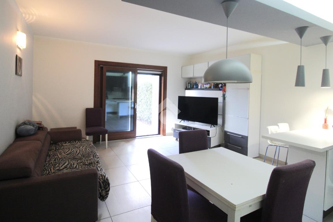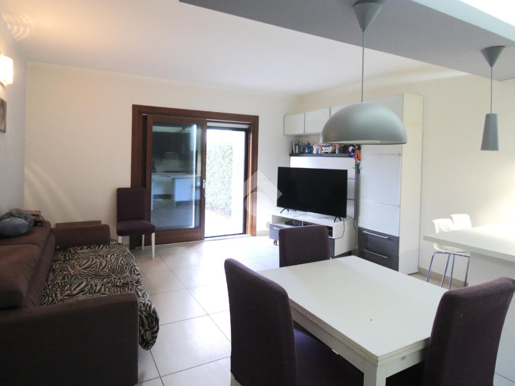 L'abitativo si sviluppa interamente al piano terra, mentre al piano seminterrato, accessibile dall'ingresso esterno e non collegato all'abitazione, troviamo la zona servizio, l'appartamento viene venduto arredato.