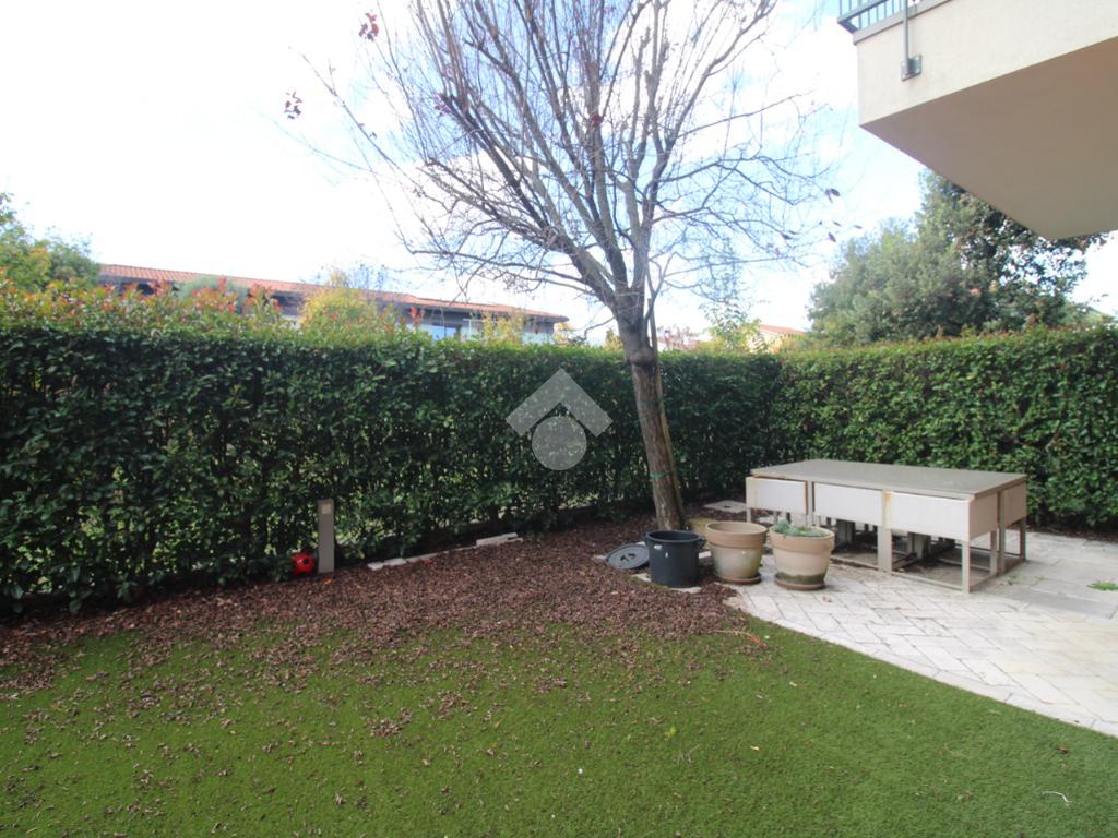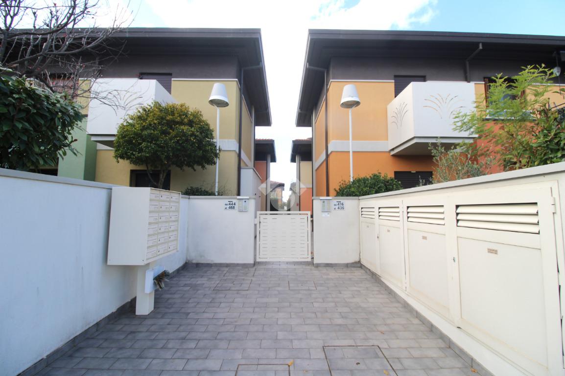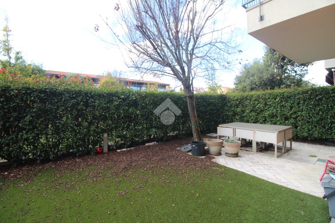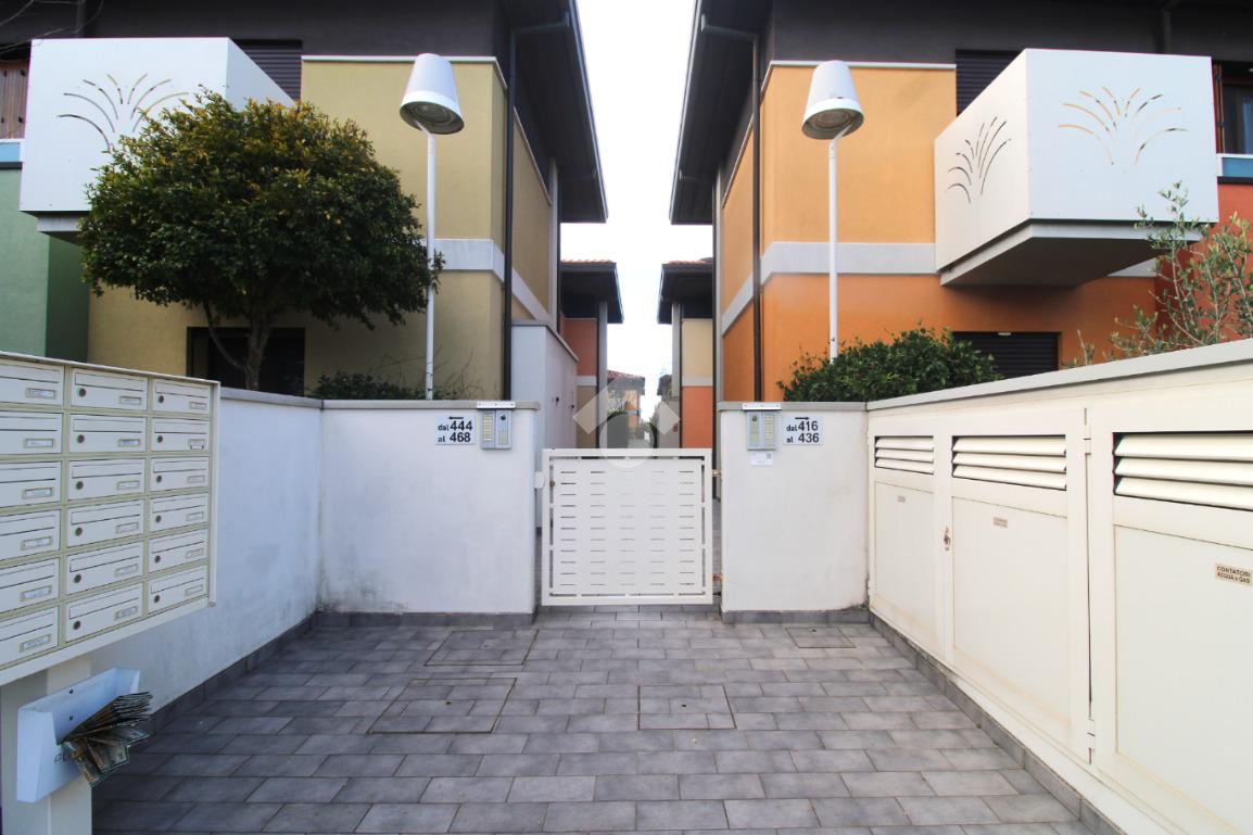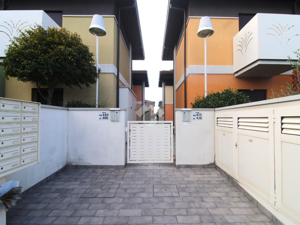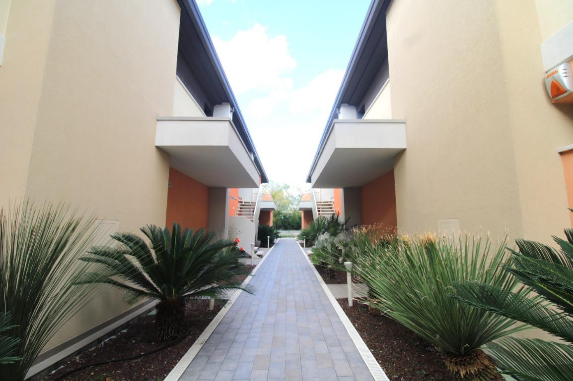 Dal viale di ingresso comune, curato e verdeggiante, si trova l'ingresso indipendente all'appartamento.