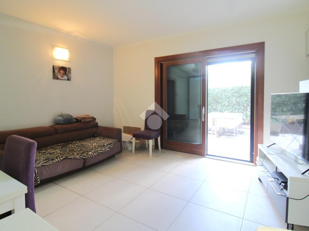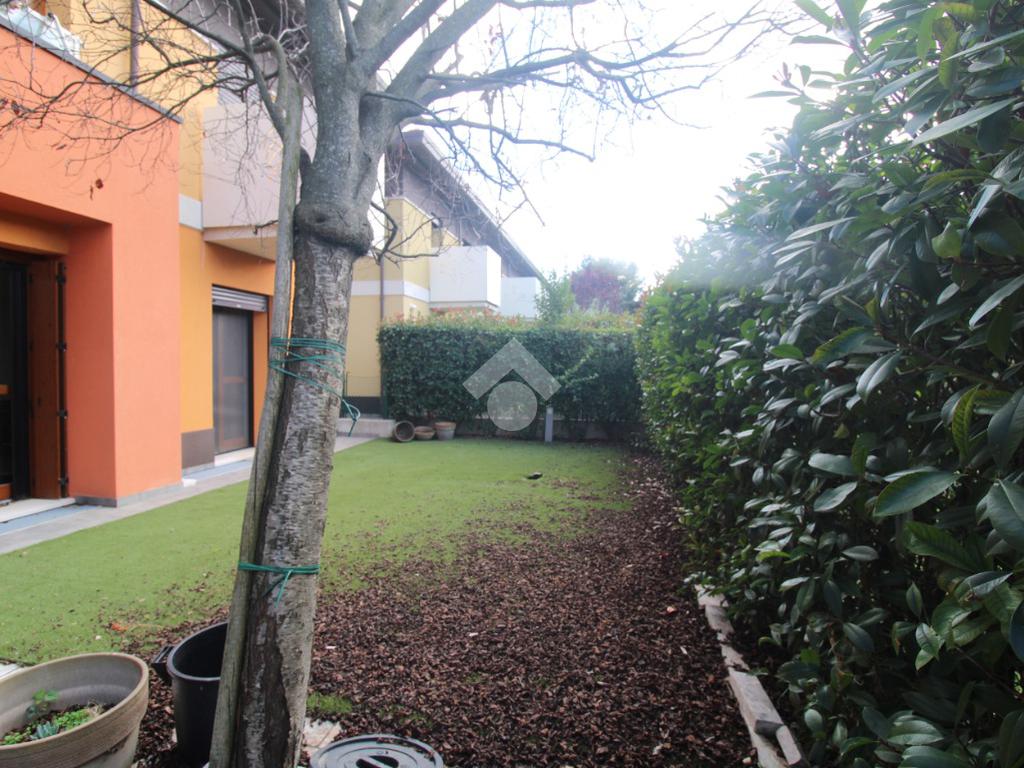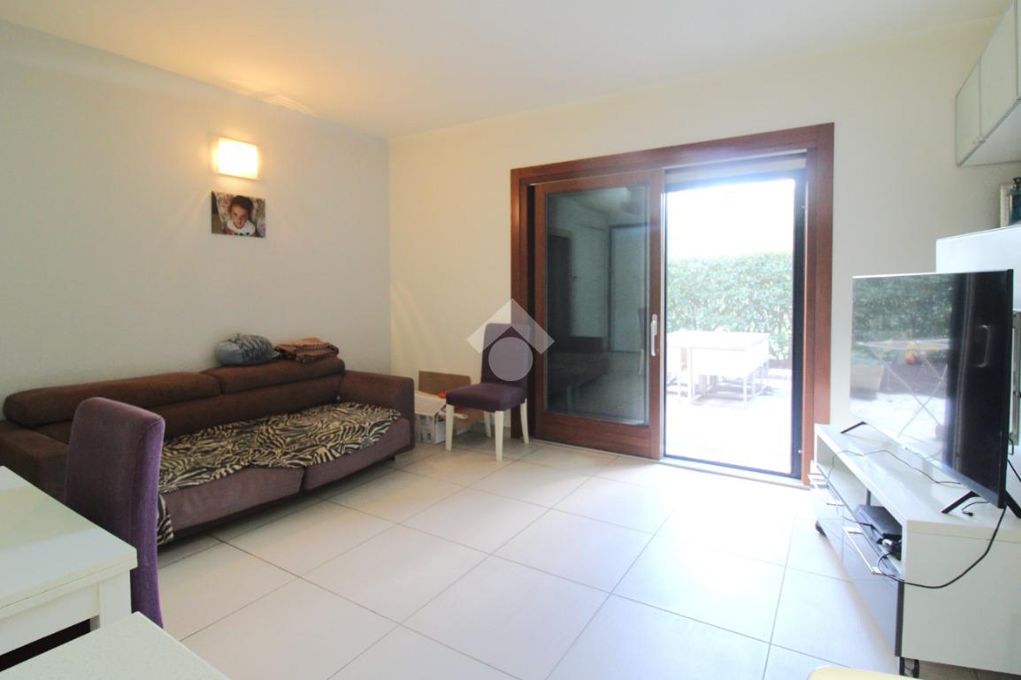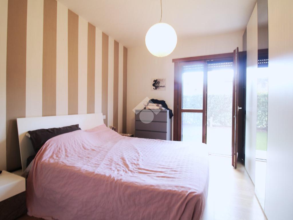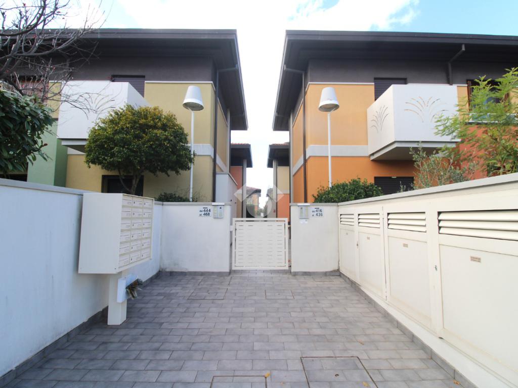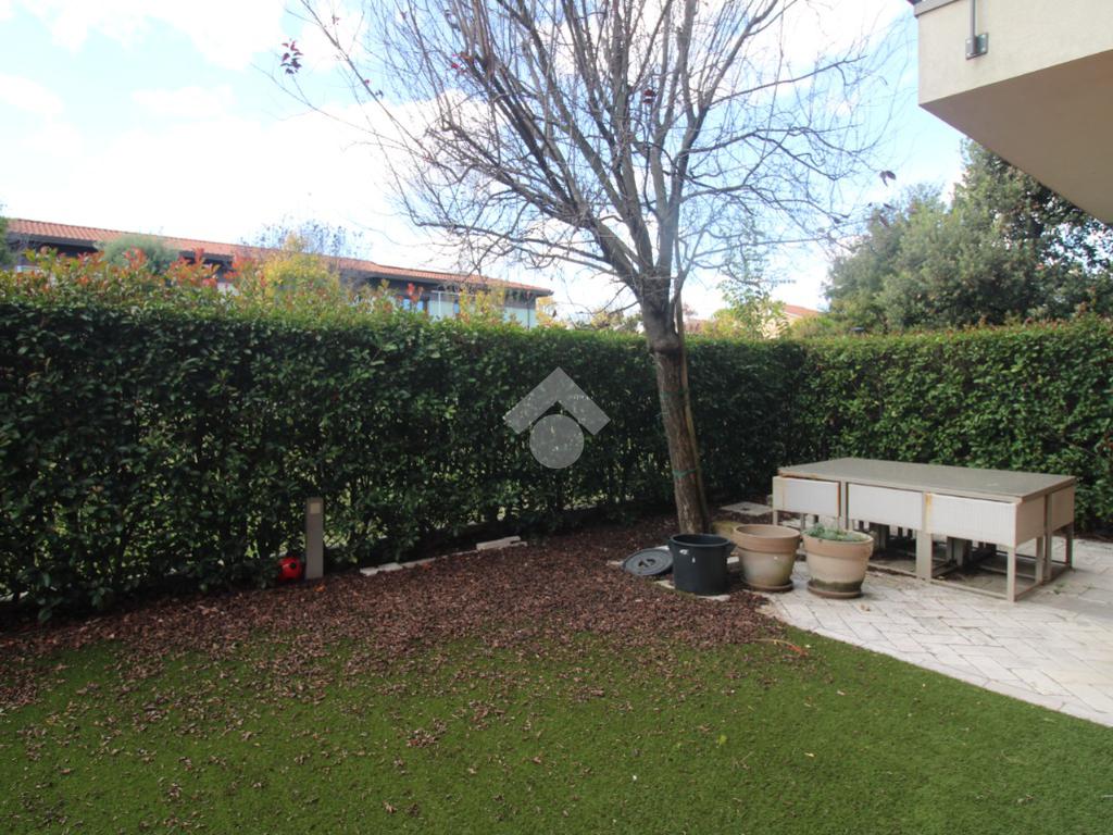 Dal viale di ingresso comune, curato e verdeggiante, si trova l'ingresso indipendente all'appartamento.
