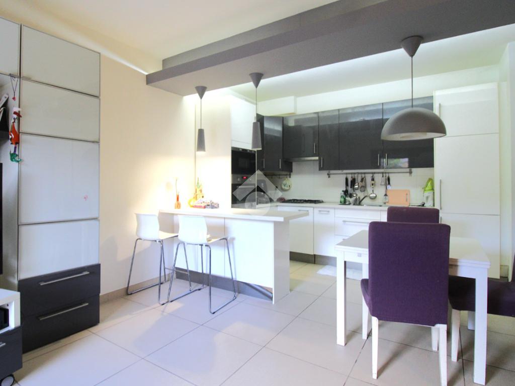 In un recente quartiere residenziale, in via secondaria dal traffico limitato, è in vendita appartamento situato in un condominio del 2010 con termocappotto esterno.