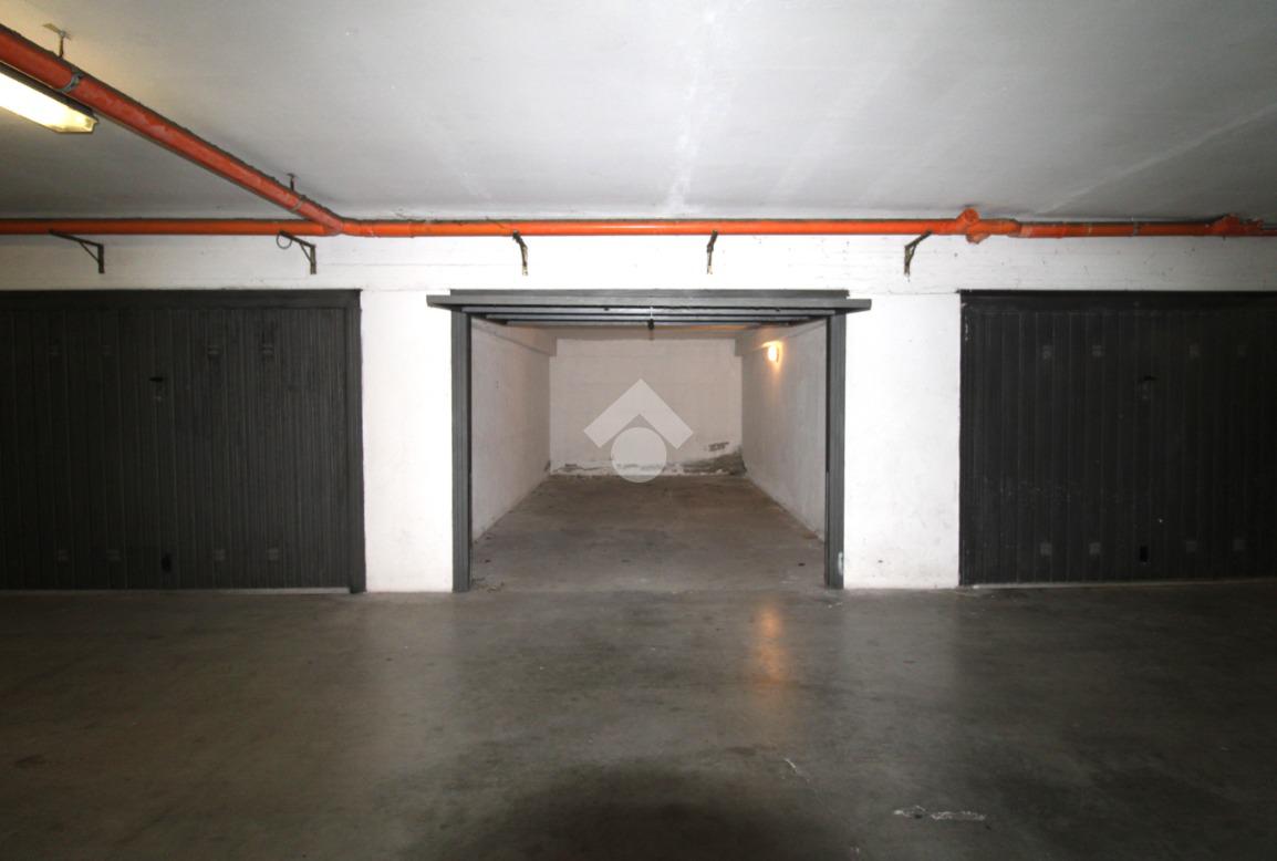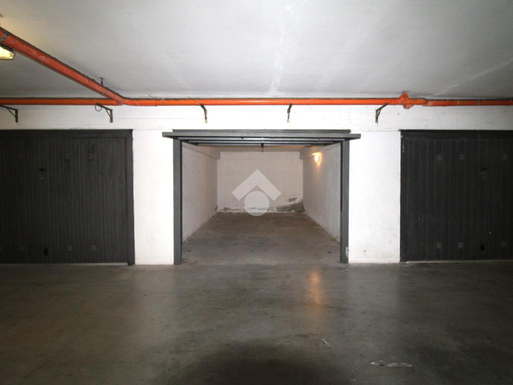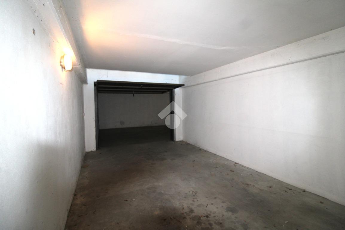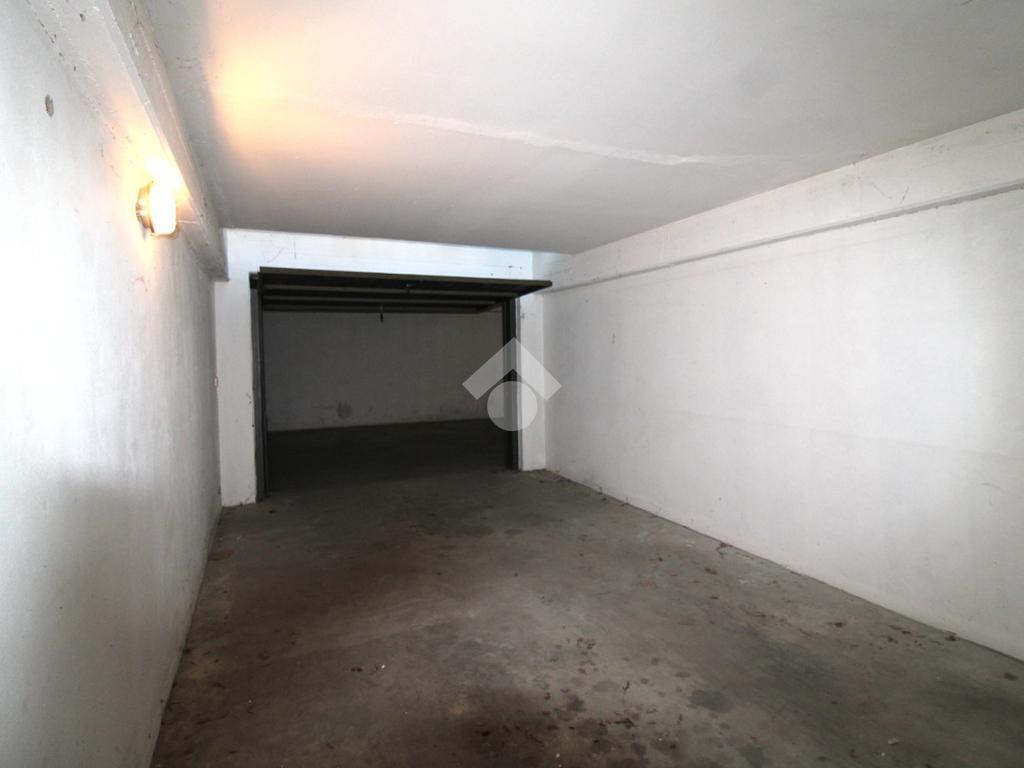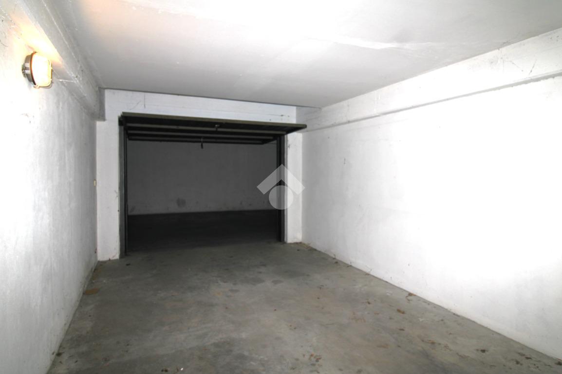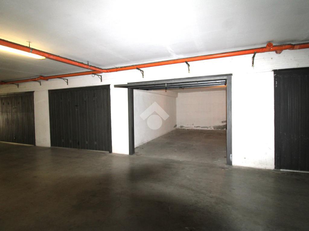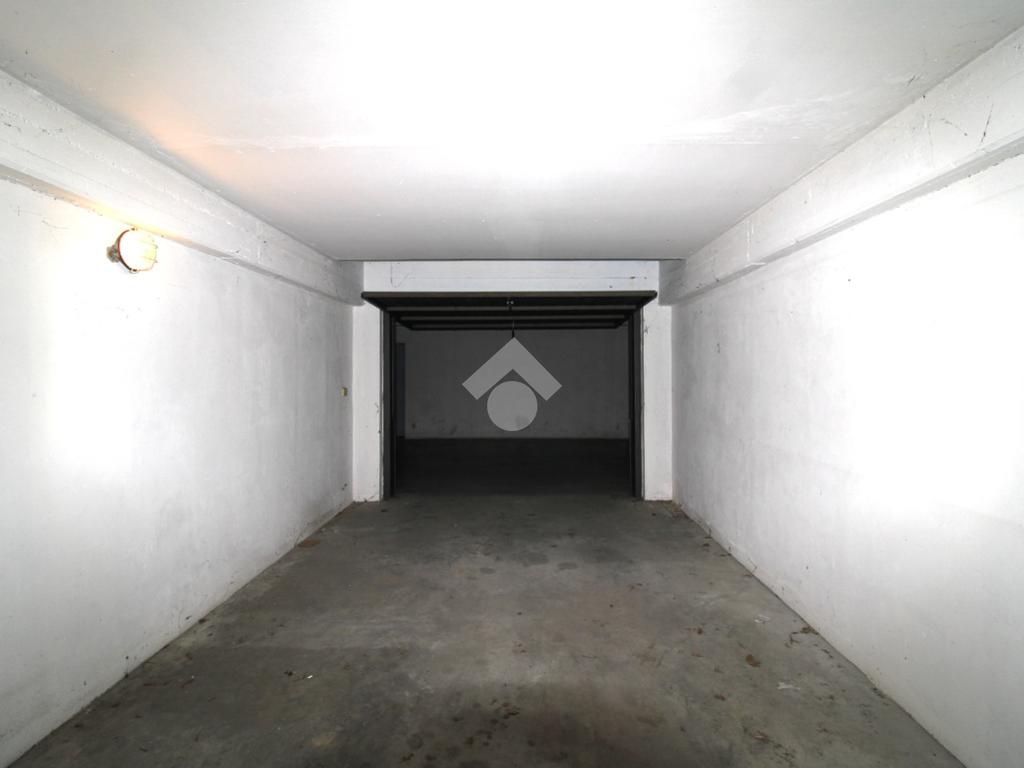 In contesto residenziale degli anni Novanta, in cui sono presenti attività e appartamenti, è in vendita un box auto coperto.