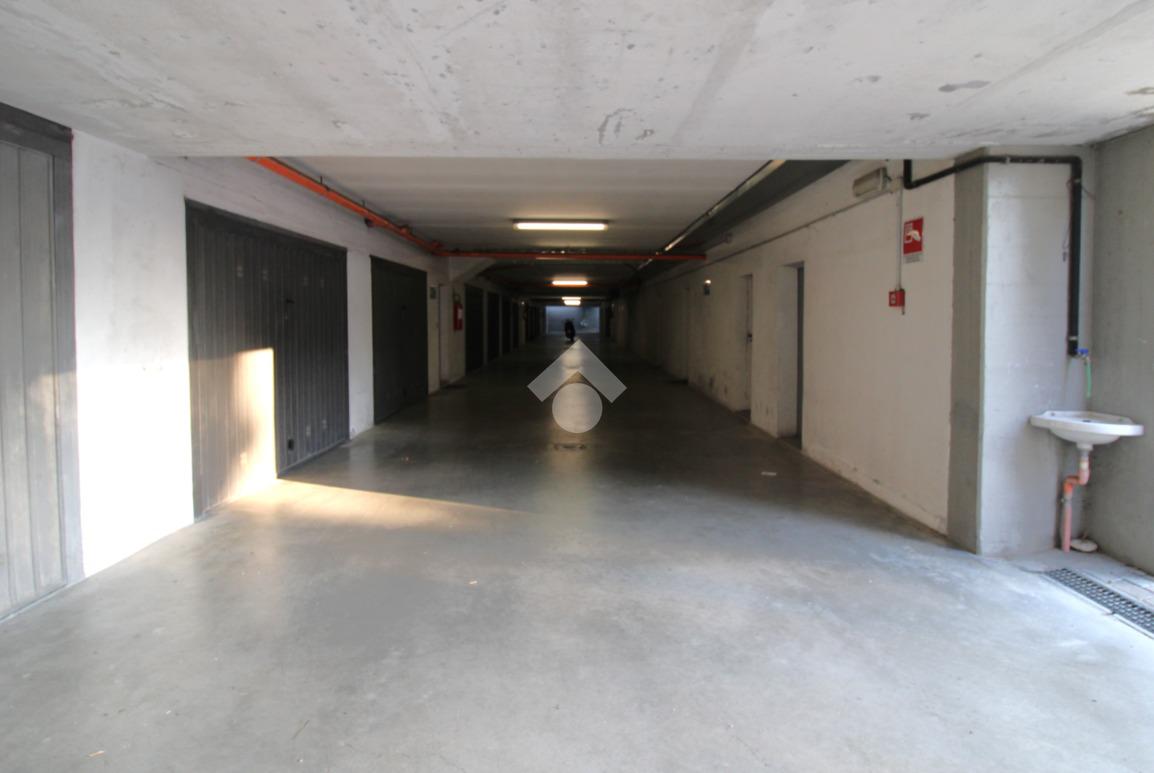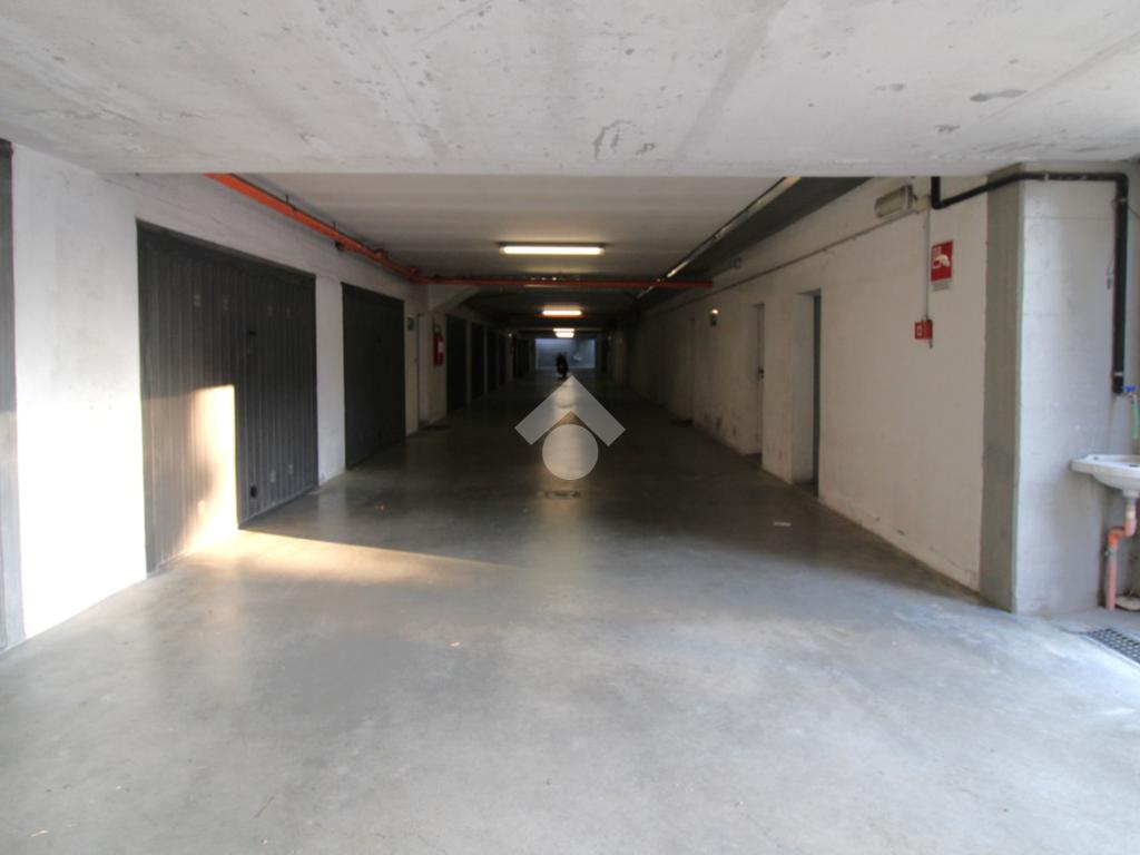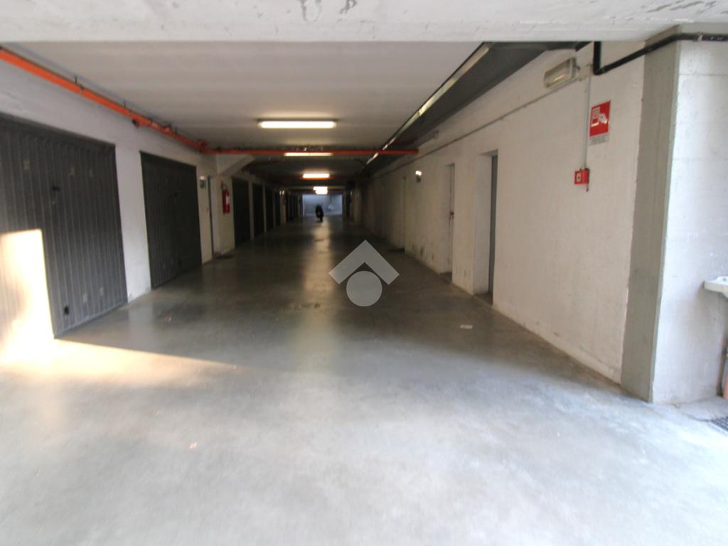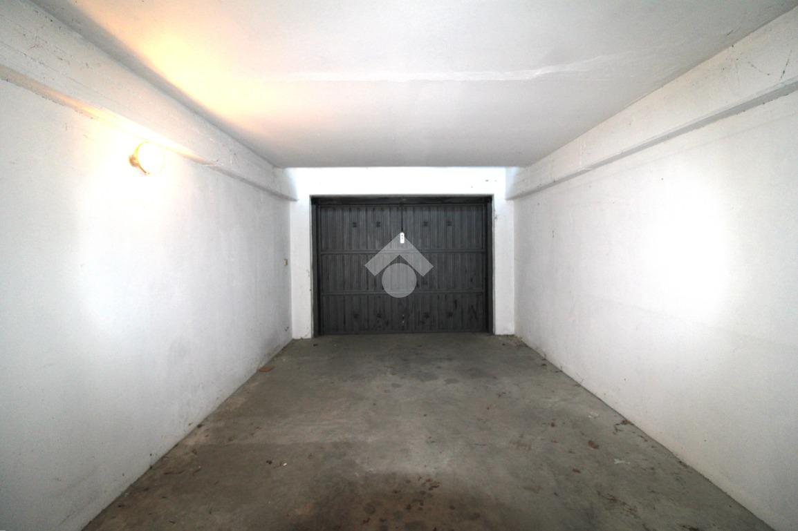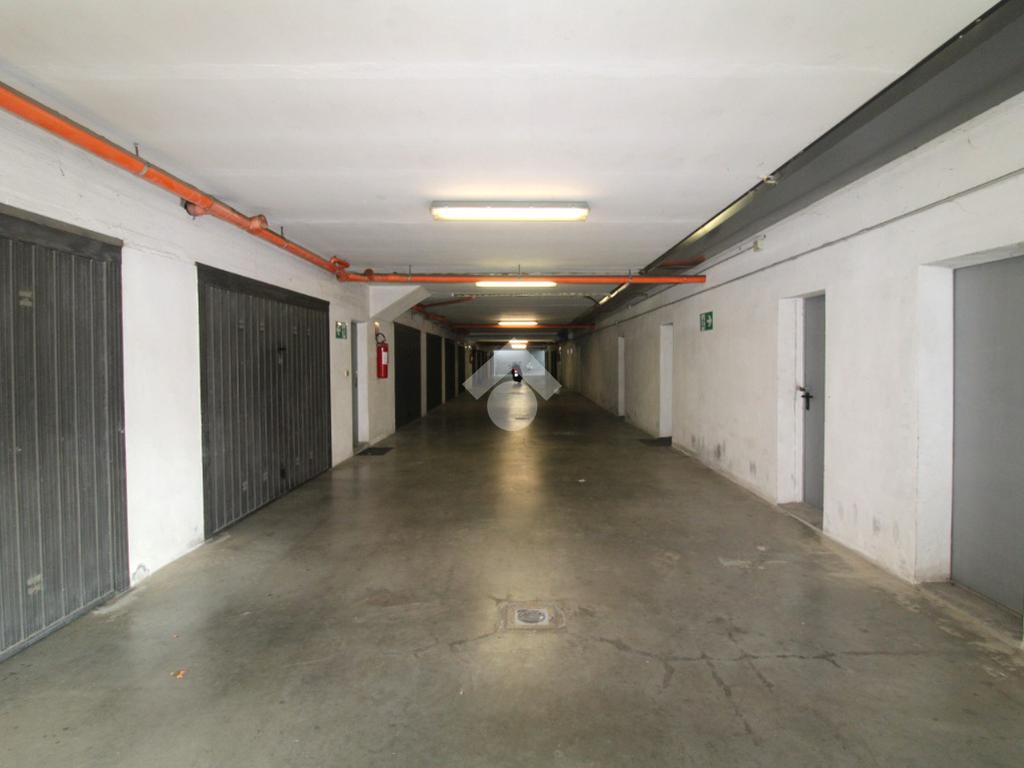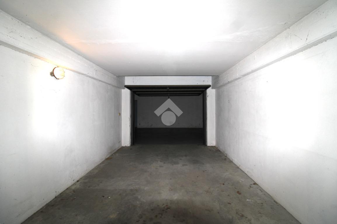 In contesto residenziale degli anni Novanta, in cui sono presenti attività e appartamenti, è in vendita un box auto coperto.