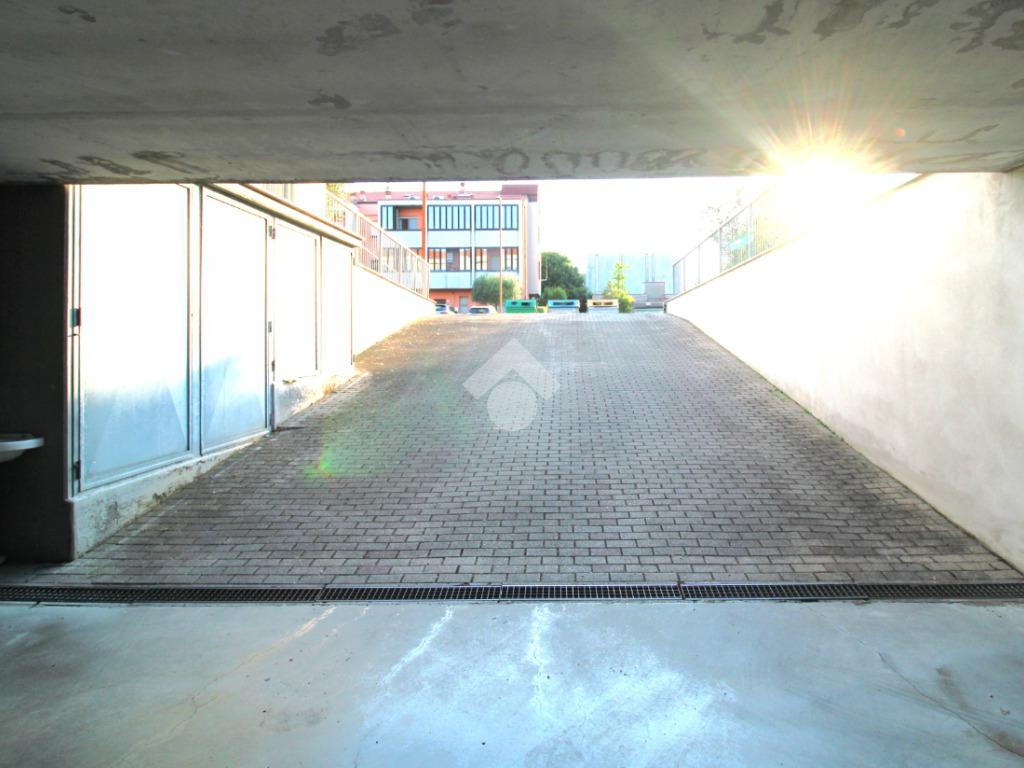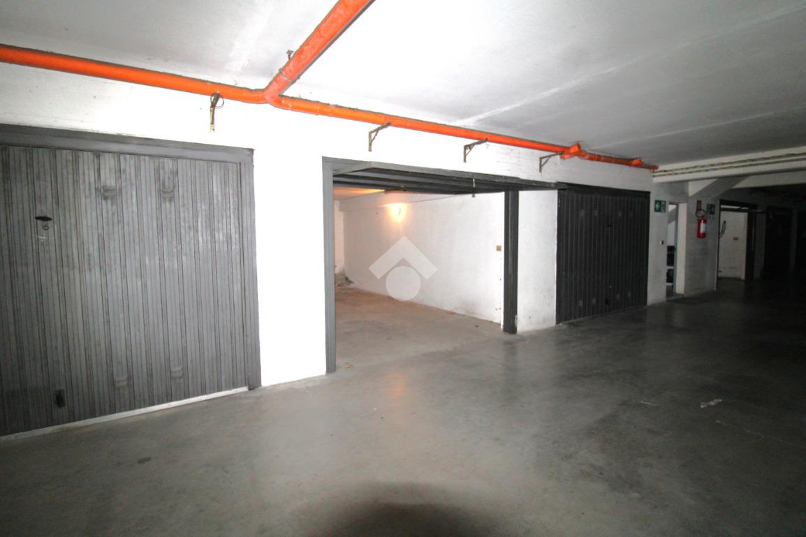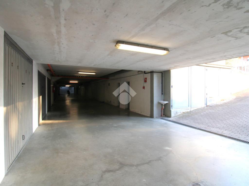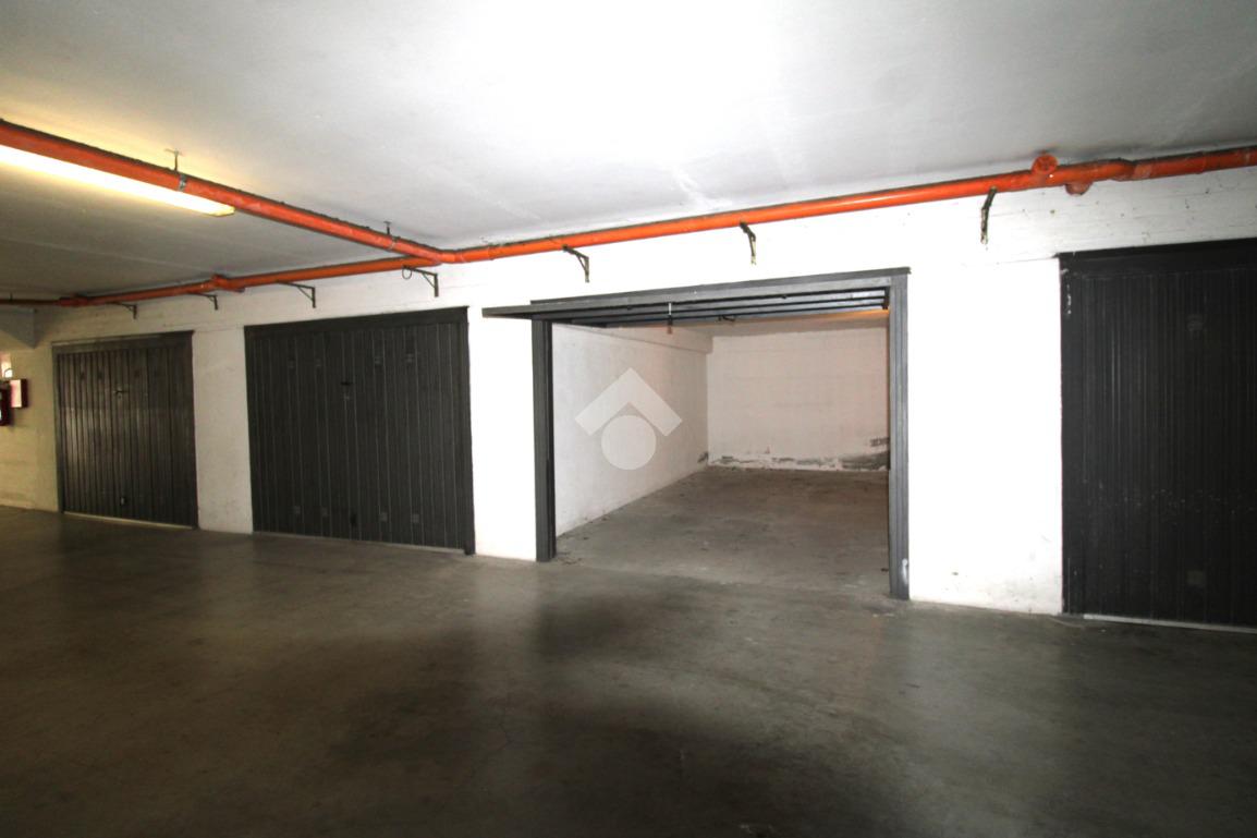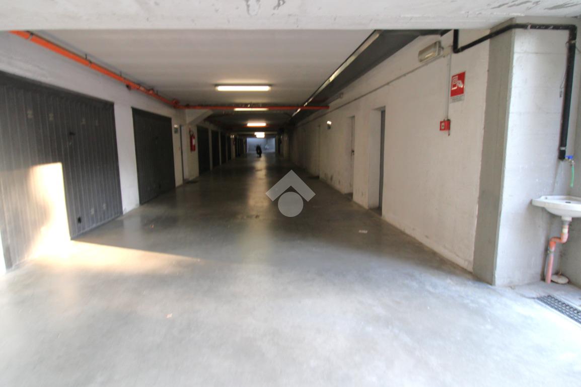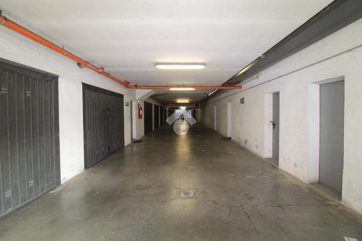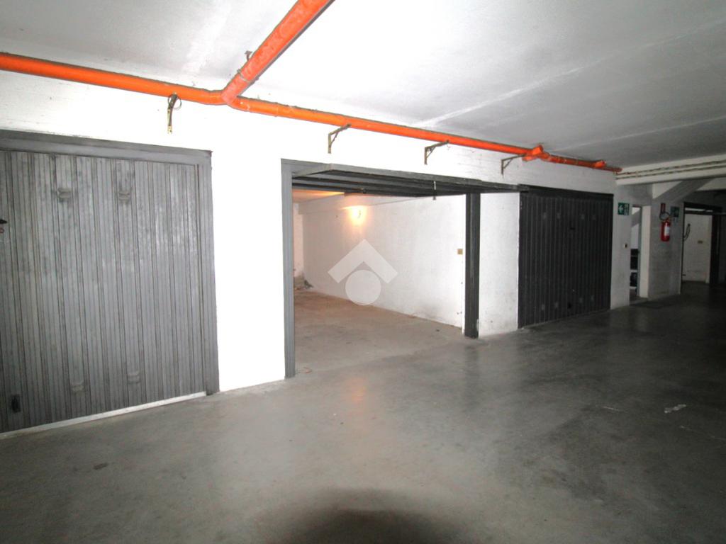 In contesto residenziale degli anni Novanta, in cui sono presenti attività e appartamenti, è in vendita un box auto coperto.