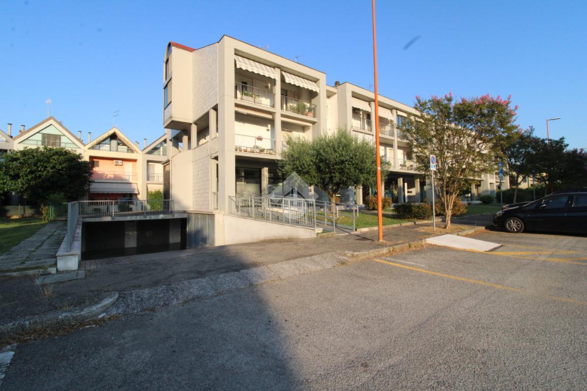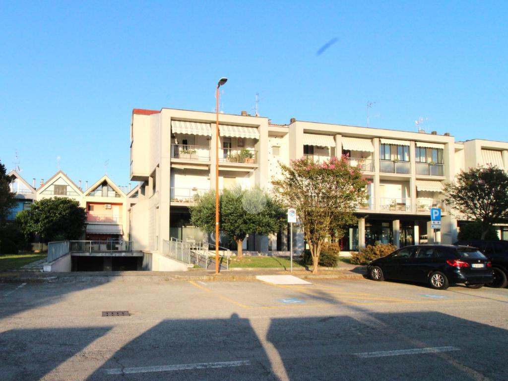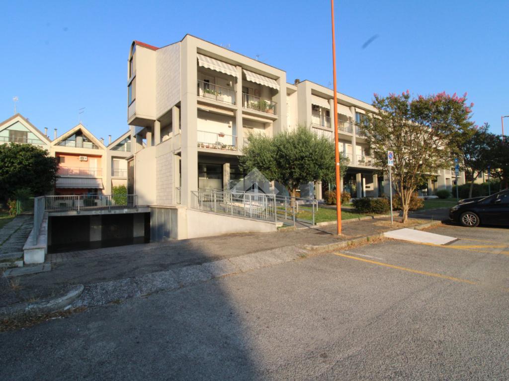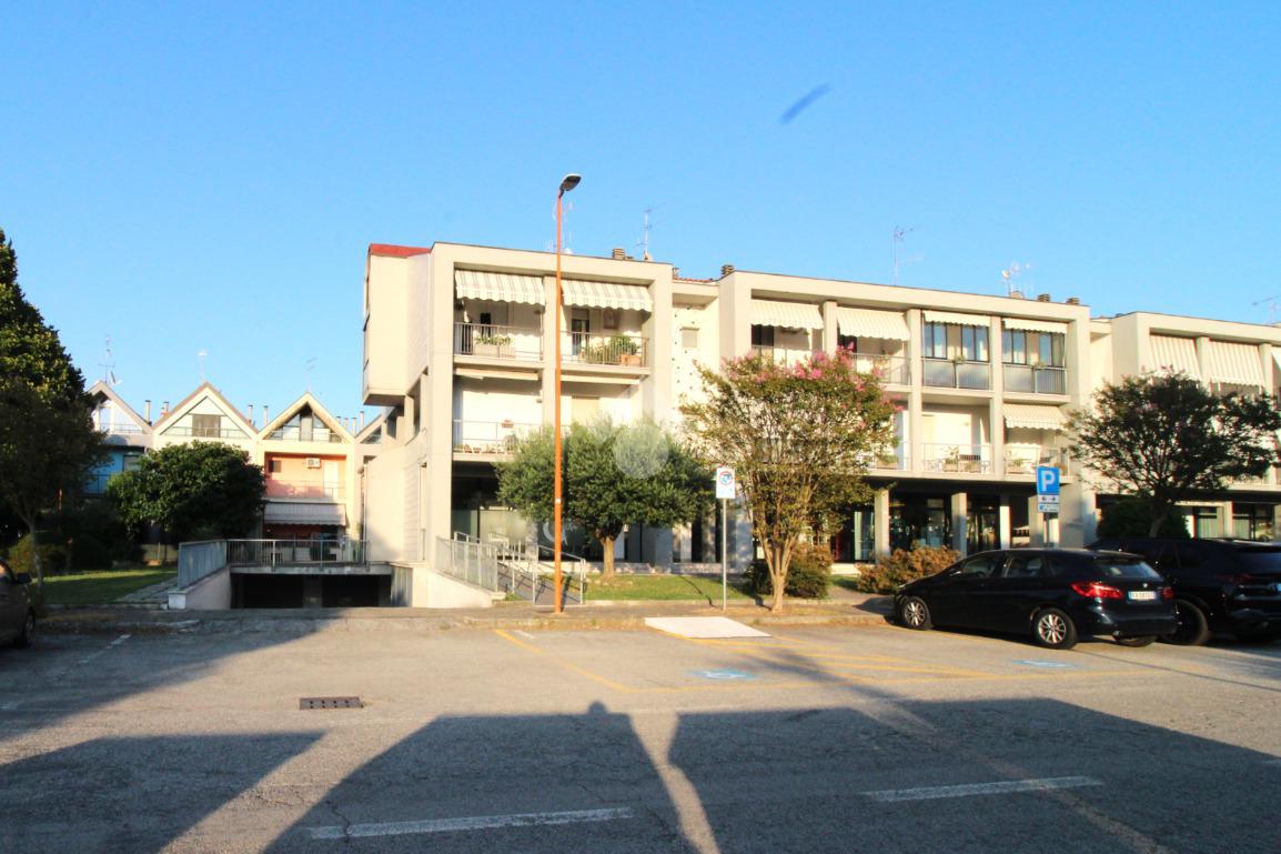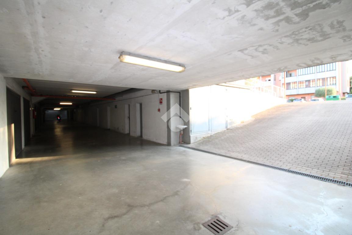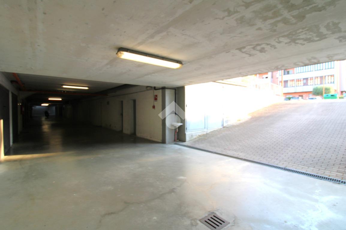 In contesto residenziale degli anni Novanta, in cui sono presenti attività e appartamenti, è in vendita un box auto coperto.